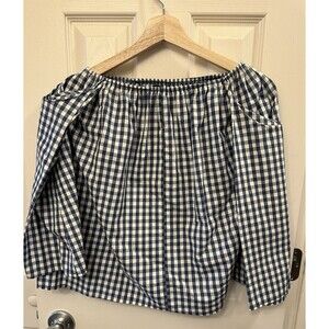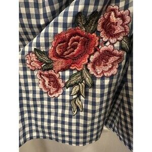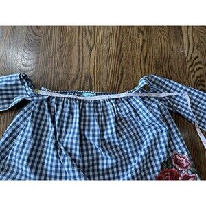 Karlie Off Shoulder Blue Gingham Top 100% Cotton Embroidered Rose Size Small