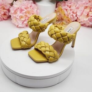 Steve Madden Kenley Citron Braided High Heel Sandals Slide-on Yellow Size 6.5