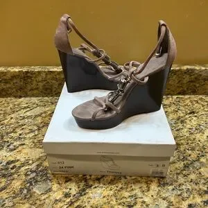 Elegant Bakers wedges with taupe straps and sleek black heels. Perfect for elevating any outfit.