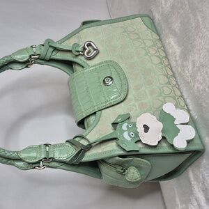 LIKE NEW Chic and stylish green Brighton handbag perfect for any occasion. Silver hardware. Canvas with leather trim. Features a unique design with a playful unbranded bag charm. Ideal for adding a pop of color to your outfit. NO CALL OUTS.