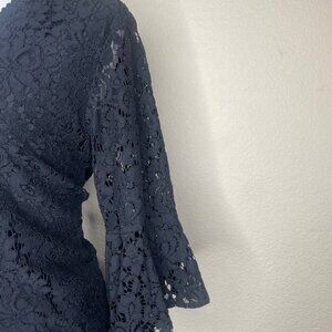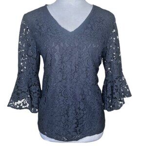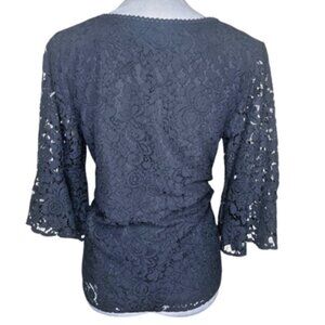 LOFT Ann Taylor Black Lace Lined Bell Sleeve V-Neck Blouse Top Size Small Career