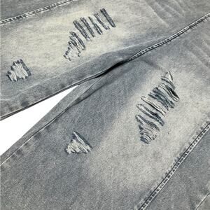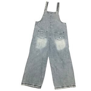 Stylish and comfortable distressed denim overalls for a casual look. Perfect for any occasion.