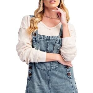 Easel Women's Jumpsuit Overalls Distressed Denim NWT