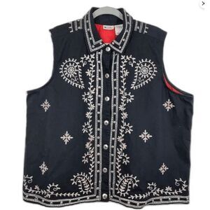 Units Woman Vintage size 1X black Studded Embellished Floral Vest
