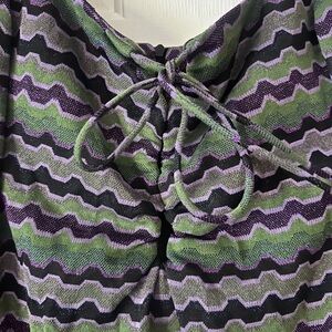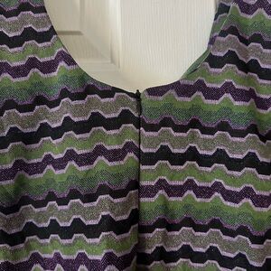 Zara NWOT Green and purple metallic geo stripe mini dress, boho 70s, size small