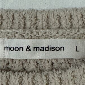This is an EUC moon & madison tan waffle knit sweater. Size L. It measures 22.5” from pit to pit & is 19.5” long. 3/4 length sleeve measuring 20.5” long from shoulder seam. Very soft.
