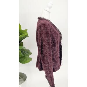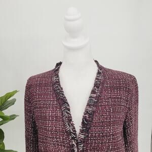 White House Black Market Womens Sz 10 Burgundy Tweed Fringe Blazer Heritage Chic