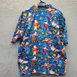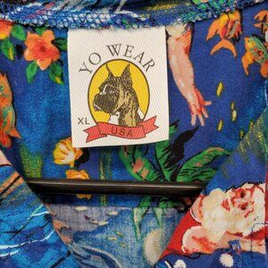 Yo Wear Hawaiian Grampcore Santa Claus Surfing Aloha Short Sleeve Size XL Blue