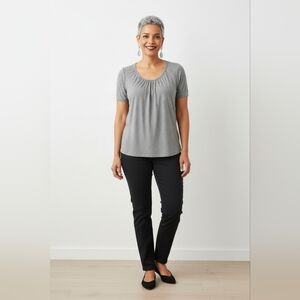 The softly puffed elbow-length sleeves add a feminine touch, while the breathable fabric keeps it comfortable and effortless all day long.