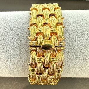Sterling Silver 925 Gold Vermeil Vintage Italy Rattan Link Bracelet. 8 inches in length and weighs 55g. Very elegant, like new condition! Signed with Dasan logo.