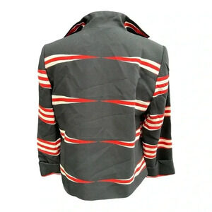 Linda Allard Ellen Tracy Black,Red & Ivory Stripes Open Front Short Jacket sz 10