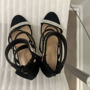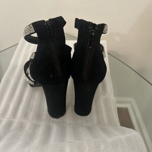 Bamboo Black Rhinestone Ankle Strap Heels Sz 10 READ Damage