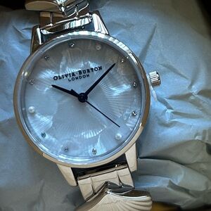 ENJOY STUNNINGLY BEAUTIFUL OLIVIA BURTON Watch With 34mm Mother Of Pearl Face With Floral Pattern On the Face With RoseGold 3D Bee On Its Face & ROSEGOLD HANDS & ROSEGOLD HOURMARKERS & GUNMETAL GREY BEZEL & DUSTY PINK LEATHER BAND. ITS ORIGINAL RETAIL PRICE IS $215 & OVERHEADS ENJOY THIS STUNNING BEAUTI AT GREAT PRICE.
