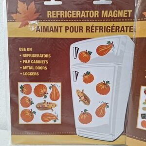 Vtg Set of 2, NEW SEALED Fall Thanksgiving Refrigerator Magnets Pumpkins Leaves