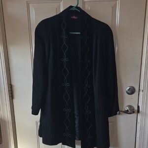 Stylish black vintage wool Alorna coat with embroidery edging. classic 80s with shoulder pads. Great condition.