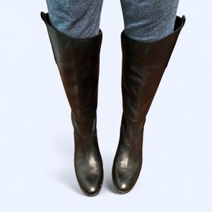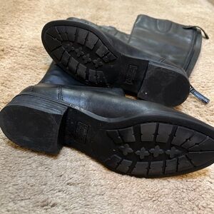 Sam Edelman black leather zip up boots. Low heel but truly feels flat when walking. Size 7 1/2. I am a size 7 and can wear with fuzzy socks. From floor to highest point of calf is approximately 17 inches.