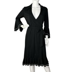 Vintage 90s Express Wrap Midi Dress Ruffle Bell Sleeves Whimsigoth Black Size 10