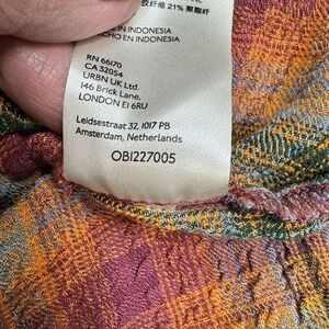Color/Pattern: Multicolor orange, blue, green, pink, gold, and green plaid.