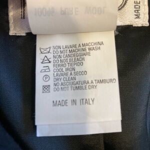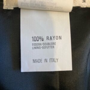 The blazer has long sleeves, shoulder pads, and button closures down the front. This style is noted for its high-quality virgin wool material and sophisticated design. Fully satin-lined. Comparable to Armani brand in quality.