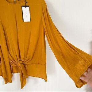 Zara yellow mustard knot long sleeves blouse NWT