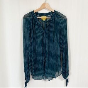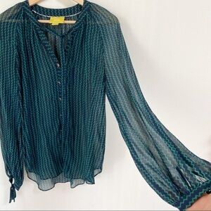 Anthropologie MAEVE long sleeve green Neck Tie Chevron Tunic sheer abstract blouse top