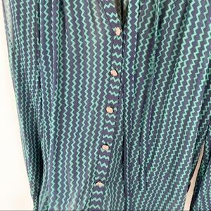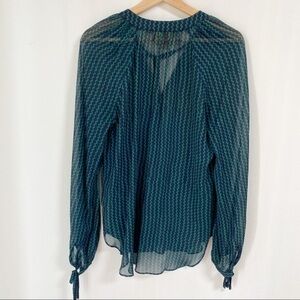Anthropologie long sleeve green Neck Tie Chevron Tunic sheer abstract blouse top