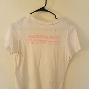 Zadig Voltaire t-shirt, graphic tee, French designer tee, Parisian style top, white graphic t-shirt, designer casual top, size small women’s tee