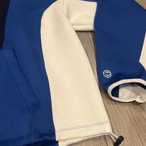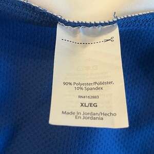 Nautica Competition Women's Track Warm Up Jacket in size XL. This stylish and functional jacket features a half-zip front, a Stand Collar, and a color-block design in shades of blue, navy, and white. Made from 90% polyester and 10% spandex, it's perfect for active wear or a casual athleisure look. The jacket is in new condition, with no signs of wear.