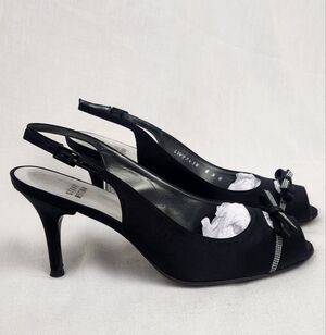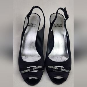 Stuart Weitzman Black Peep Toe Sparkle Bow Heel Pumps