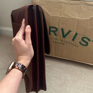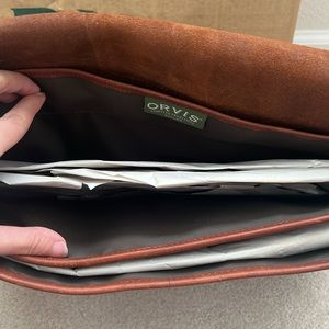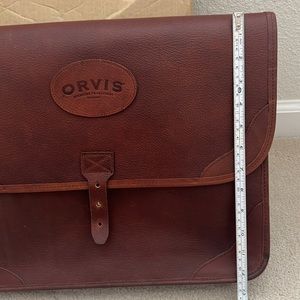 Purchased in 2006 and has been sitting in the Orvis cardboard box and plastic wrapped ever since. Has the wonderful scent of leather. Carry your files, important documents, valuables, and writing instruments in style with this prestine Orvis leather briefcase.