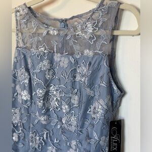 Alex Evenings Dusty Blue Embroidered Floral Sequin Sheath Dress- new with tags!