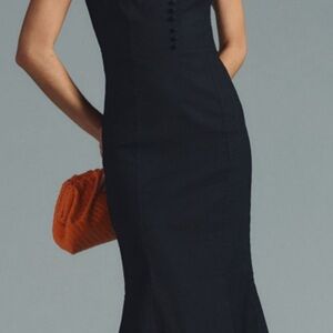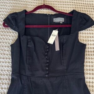 This elegant black dress is perfect for any occasion. Its sleek design offers a timeless look that is both sophisticated and versatile. NWT