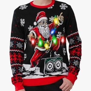 Ugly Christmas Sweater with lights that flicker or stay steady. NWT in original packaging.
