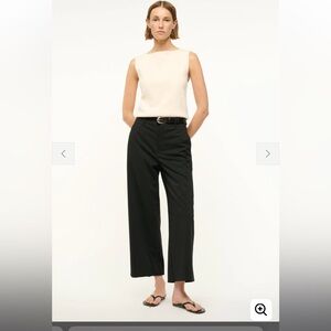 High-rise wide leg jean in Japanese stretch denim. Trouser details. Side slash pockets. Back welt pockets. Zip fly. Shank closure. Belt loops.