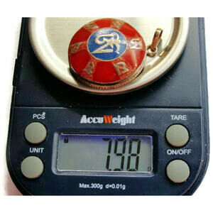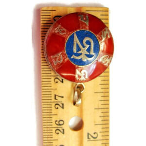 Oriental Red Blue Enamel Circle Pendant Charm Sterling Silver 925 Vintage
