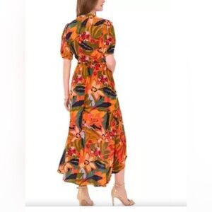 MSK Split-Neck Puff-Sleeve High-Low Dress women’s Sz L Floral Boho NWT