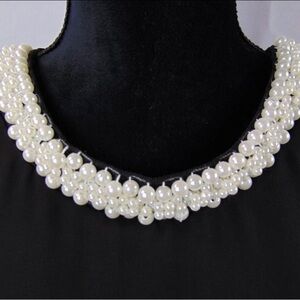 Sophisticated black mini dress. Adorned with a pearl neckline. Ideal for special occasions.