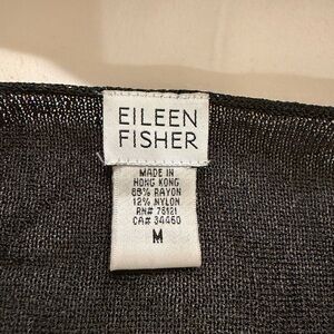 This is a women's black V-neck sweater by Eileen Fisher, featuring a simple and elegant design. Made from a blend of high-quality materials, it offers both comfort and style.