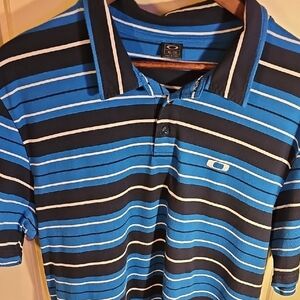 OAKLEY- Men's Blue Striped Polo SIZE XL