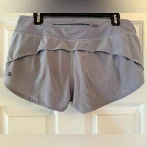 Set of three Lululemon Speed Up low rise shorts. Includes lavender gray, dark blue-green, and white. Size 8. EUC