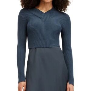 This sweater was part of a two piece set, but the dress is not available so selling the sweater separately. Still a very cute, high-quality piece. Please review the pictures carefully prior to any purchase. If you have any questions, please ask. I feel like this piece is more suited to a medium.