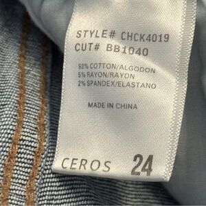 NWT Altar’d State jeans by Ceros, size 24. Medium wash denim with ripped knees, distressed details, and raw frayed hems. Cropped ankle length with a flattering slim fit.