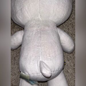 This hello kitty bear has pink staining from the outfit and has a sound chip that doesn’t work anymore. Please see photos
