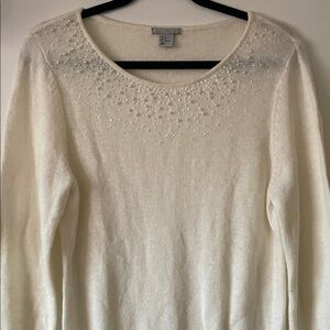 H&M Cream beaded Scoop Neck Sweater- Medium