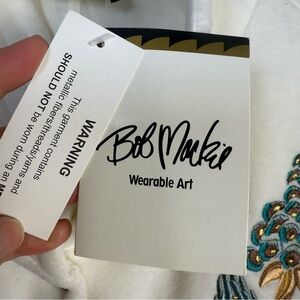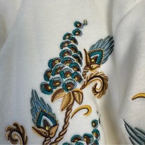 NWT Bob Mackie Wearable Art Embroidered Fleece Jacket White Gold Teal Size XL