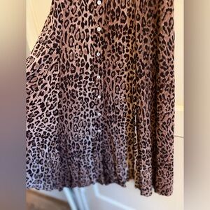 Beautiful RIXO London Leopard Print Dress in style “Ellen.” Viscose and cotton with lace detailing. The fabric has a beautiful drape and the bust darts are very flattering.