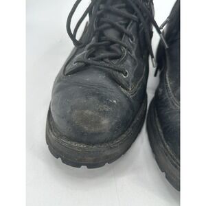 These Danner Acadia 69210 Tactical Boots are perfect for any occasion, whether it be for activewear or workwear. The round toe and lace-up closure provide a secure fit, while the synthetic outsole offers slip-resistant properties. These boots feature a mid-calf shaft style and a solid black color with accents of lace, eyelet, and logo. Made with leather upper material and fabric lining material, these boots are comfortable and durable. The boots are designed for unisex adults and come in a US shoe size 13 and UK shoe size 12.5. These vintage boots are part of the Danner Acadia product line and are perfect for winter, fall, and spring seasons.