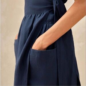 NWT Grae Cove 100% Linen Navy Blue Front Pocket Wrap Belted Midi Dress Large