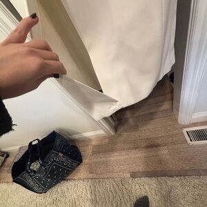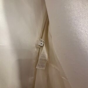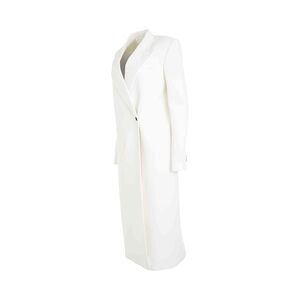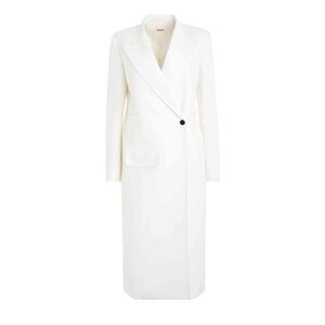 Elegant white coat with a sleek design. Features a single button closure. Perfect for a sophisticated look.