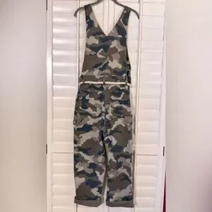 Anthropologie Carter Utility Dungarees Camo Overalls with Rope Detail